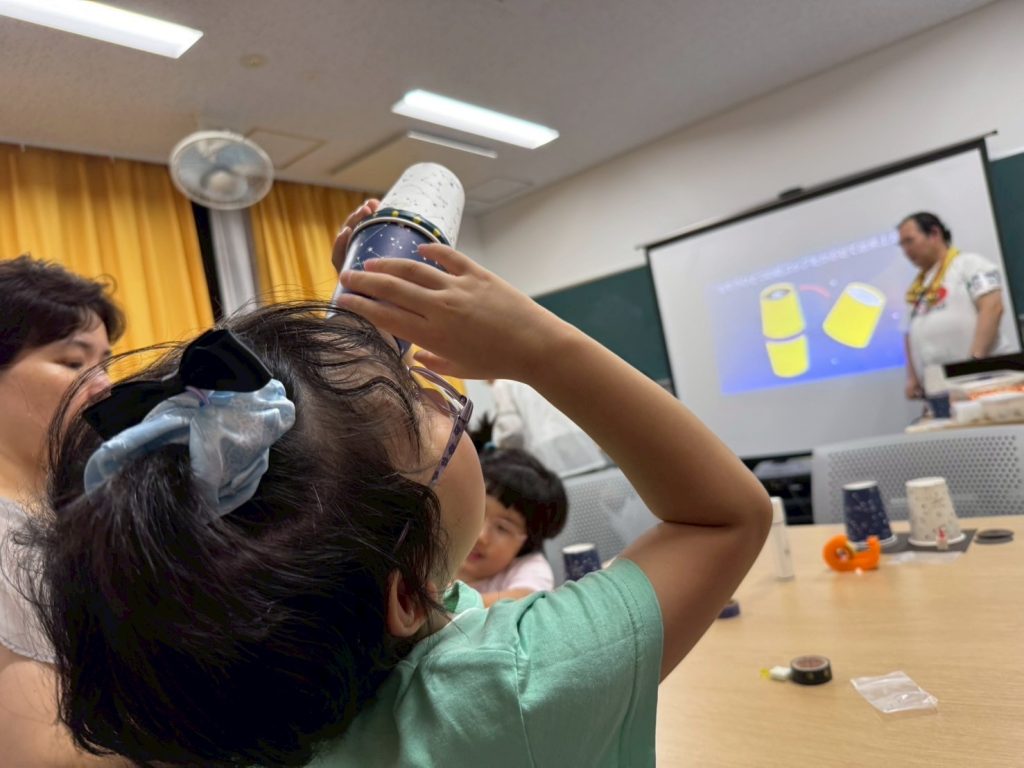 2025年8月30日(土)、豊島区区民ひろば朝日と運営協議会からのご依頼で、今年も恒例の『夏の星空たんけん』を開催しました。 前回まで会場だった朝日小学校から、新しく生まれ変わった区民ひろばへと場所を移しての開催です。広くきれいな施設には部屋もたくさんあり、今年はいくつかのワークショップを同時に開催することができました。